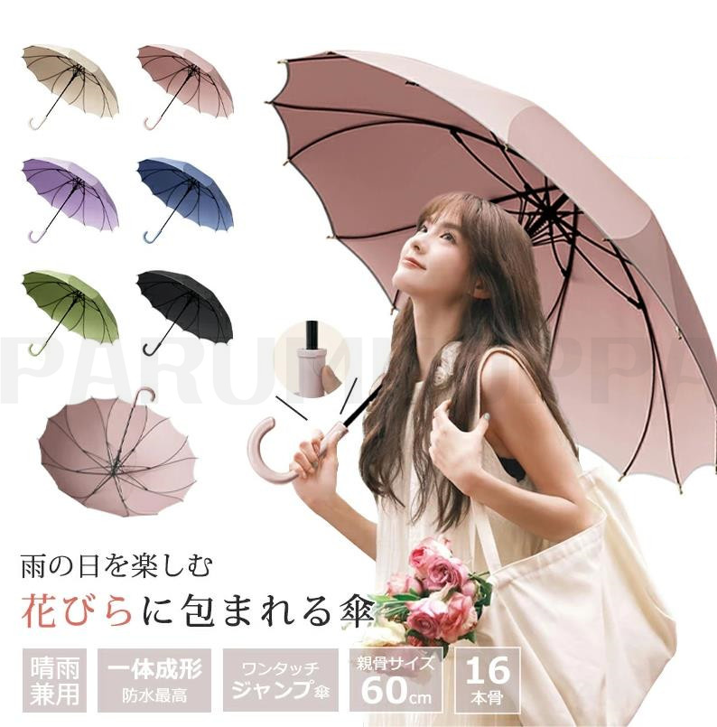 【花びら傘 2size選べる】傘 レディース 16本骨 雨傘 メンズ ワンタッチ ジャンプ傘 一片式 長傘 長雨傘 和風傘 おしゃれ かわいい 無地 大きい 耐風 丈夫 人気