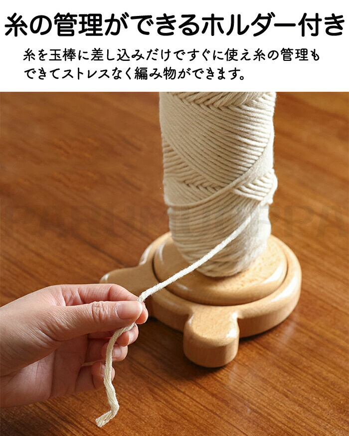 糸の管理が簡単にできるよう糸ホルダー付きで毛糸玉を棒に差し込むだけ!誰でも簡単にストレスなく編み物ができます。