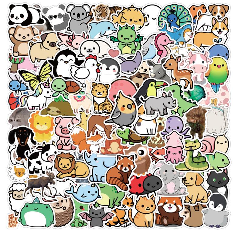 100枚 可愛い動物 ステッカーセット かわいい 動物 学校 防水シール スーツケース バイク ヘルメットなど適用 プレゼント 誕生日 子供 男の子 女の子