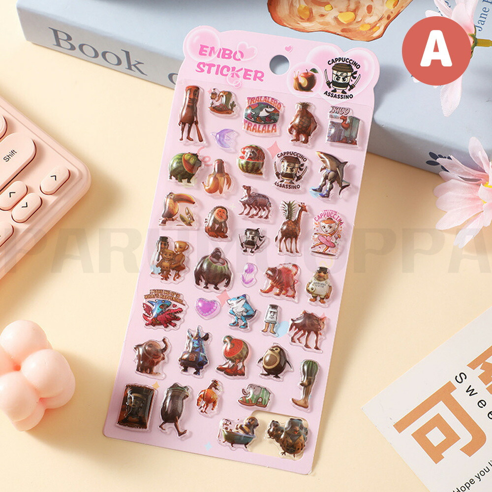 シール イタリアンブレイン ロット ぷくぷく可愛い ぷく ぷく 立体 泡ステッカー 3D イタリアンブレインロット ステッカー キラキラ デコ ぷっくり DIY用 手帳用