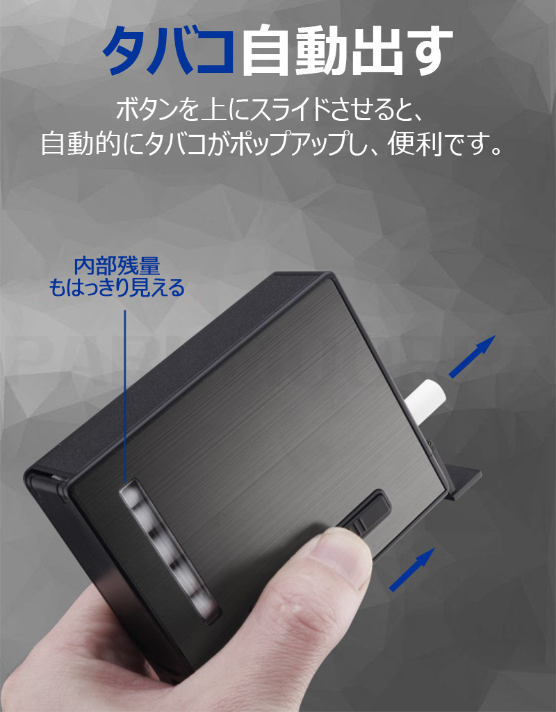 ボタンを上にスライドさせると、自動的にタバコがポップアップし、便利です。