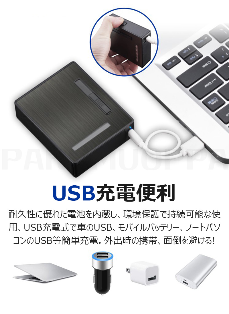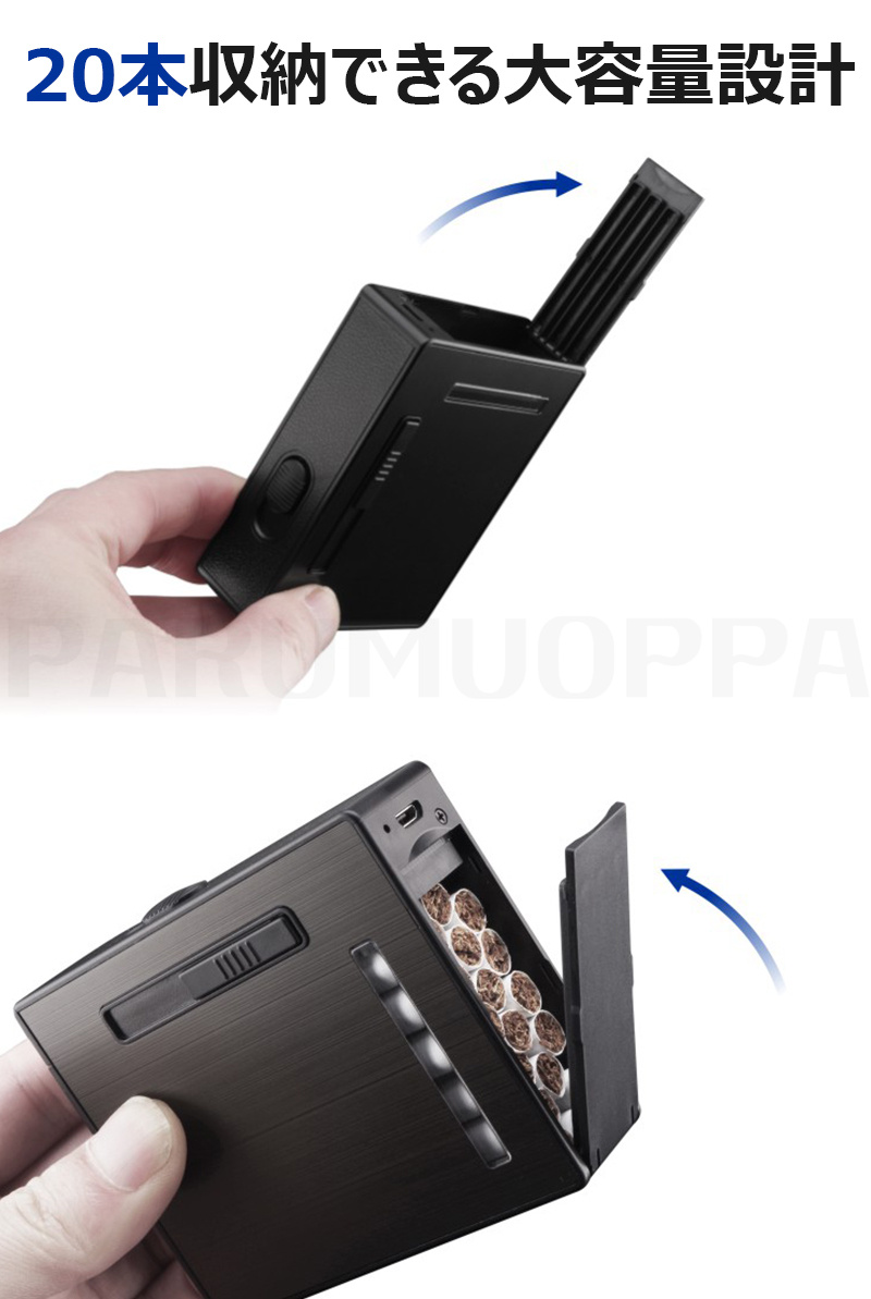 着火ライター機能 自動排出 20本入れ大容量 USB充電式 防湿性 最后一个去掉
