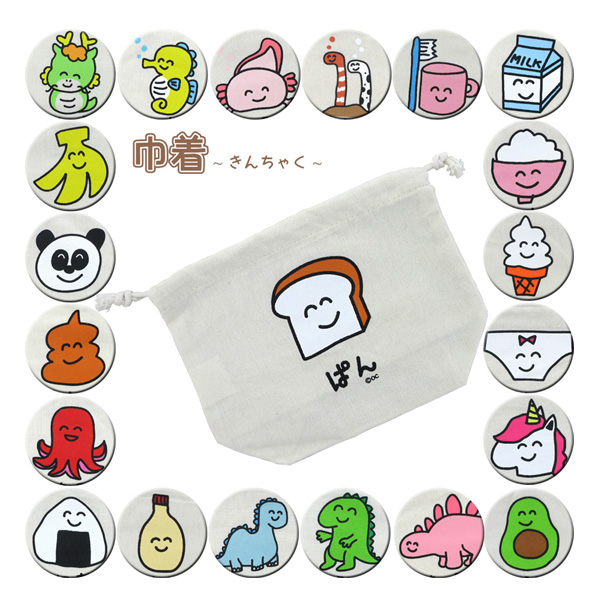 【ネコポス便発送可】080215-081113 おえかきさん 巾着 オクタニコーポレーション 食べ物 生き物 動物 ぱん ごはん そふと ぱんつ ゆにこーん おにぎり うんち