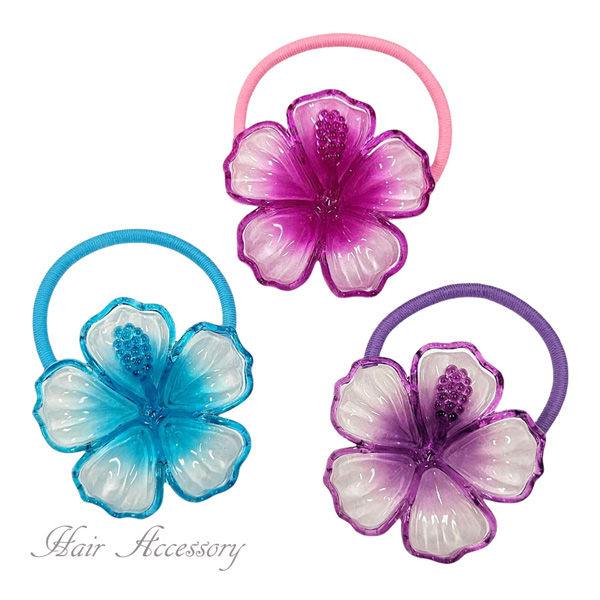 【ネコポス便発送可】PYK-2503 コンチョポニー ハイビスカス PK BL PU ヘヤーアクセサリー 髪留め WILL ファッション おしゃれ まとめ髪 ヘアー