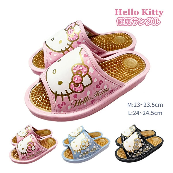 SA4192 サンリオキャラクターズ ヒョウリボン柄 健康サンダル ハローキティ M 23cm L 24cm PK ピンク SAX サックス BK ブラック SANRIO CHARACTERS