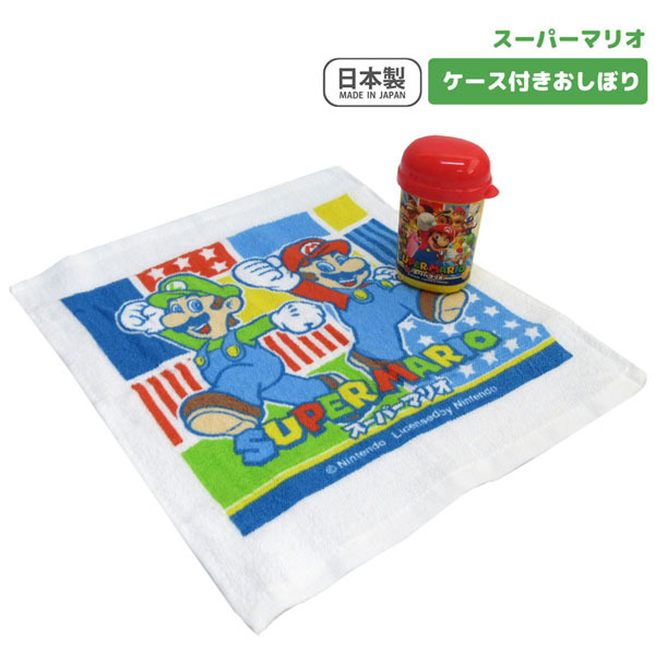 スーパーマリオ 375873 ケース付おしぼりセット nintendo 任天堂 日本製 OA5 入学 入園 キャラクター 弁当箱 昼食 遠足 運動会 ピクニック 公園