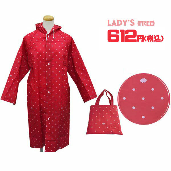 【ネコポス便発送可】98735S ジップコーポレーション びっくり超特価![RAIN COAT LADY'S]レインコート レディース(ドット・レッド) 大人 通勤 お買い物