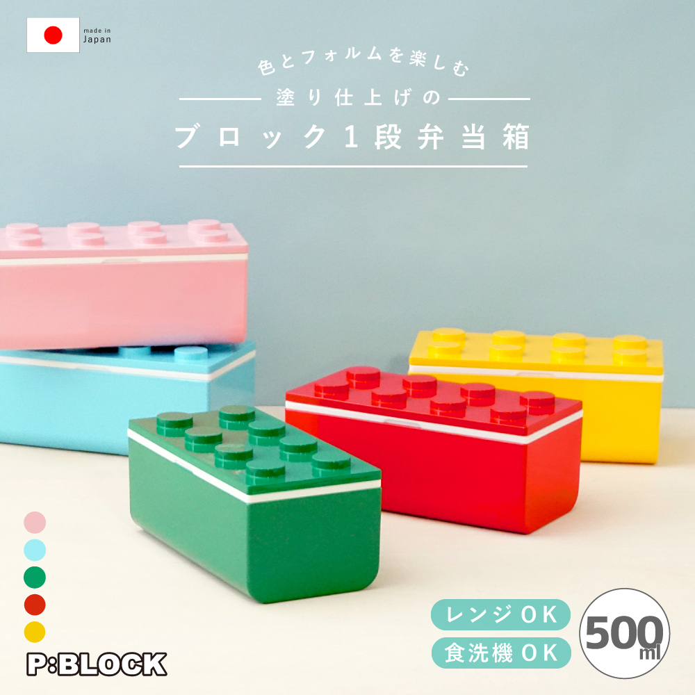 弁当箱 お弁当箱 子供 1段 レンジ対応 仕切り 女子 ランチボックス スリム こども 幼稚園 小学生 ギフト 日本製 P:BLOCK ブロック 1段弁当箱 500ml