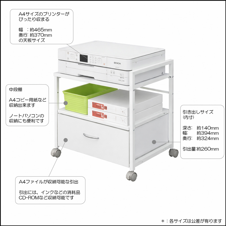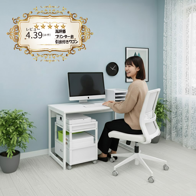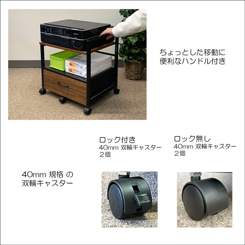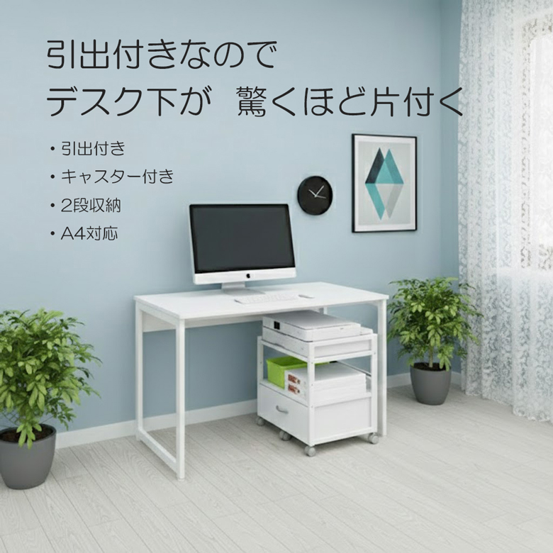 【デスクやテーブルの下に収納可能なワゴン・プリンター台】