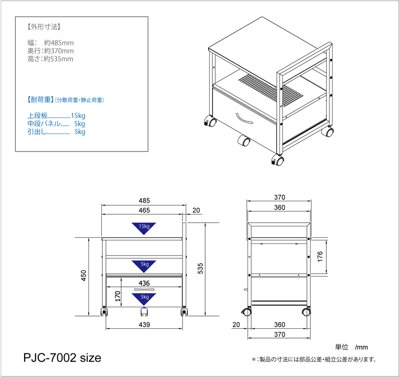 商品名: 引出し付き プリンターワゴン PJC-7002
