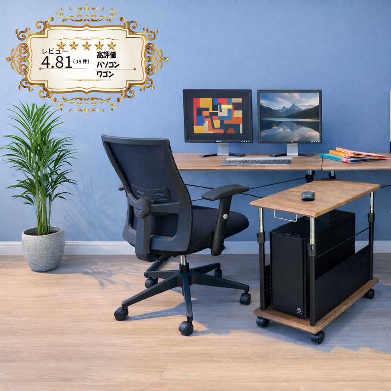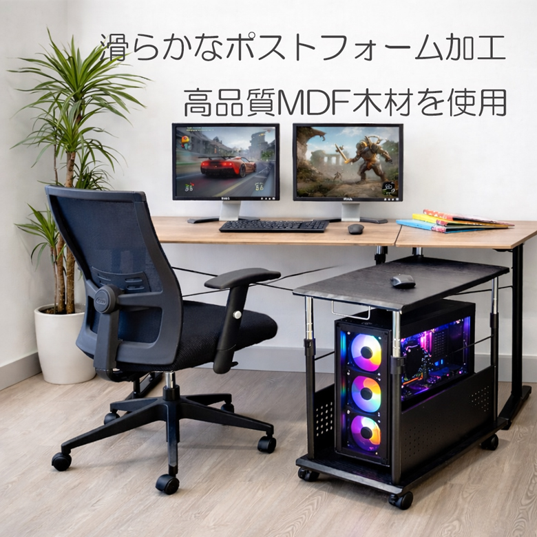 L字デスクに設置・机の下に入れても 机と同じ高さでも |