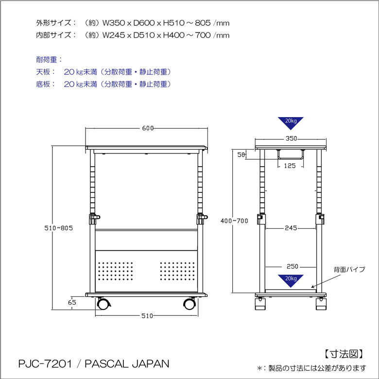 | 耐荷重 | ・約20kg(天板) ・約20kg(底板) |