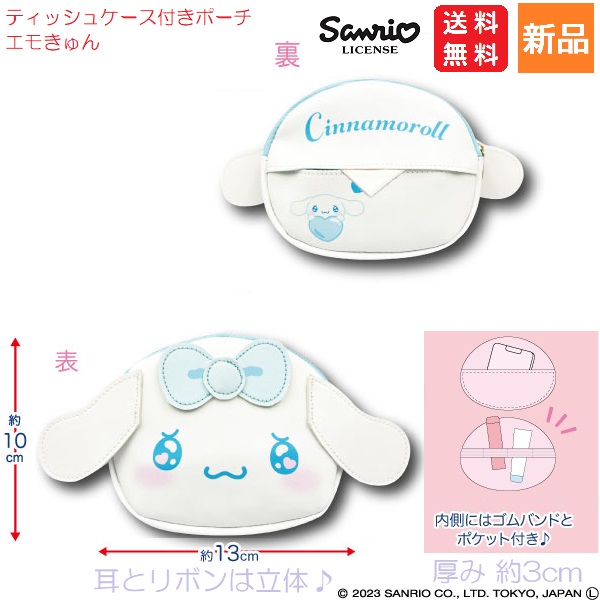 シナモロール ティッシュケース付きポーチ エモきゅん Cinamoroll 送料無料 かわいい Sanrio サンリオ キャラクターポーチ 女の子 キッズ 女子 レディース