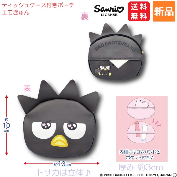 バットバツマル ティッシュケース付きポーチ エモきゅん BAD BADTZ-MARU 送料無料 かわいい Sanrio サンリオ キャラクターポーチ 女の子 キッズ 女子 レディース