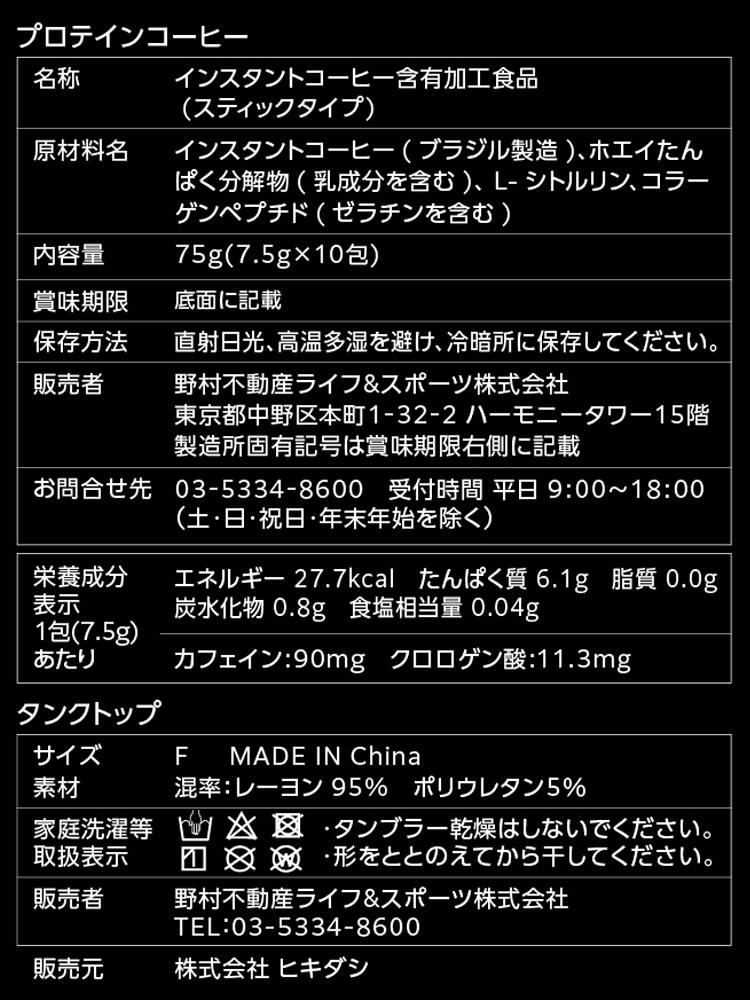 | セット内容・構成品 | スティック×10包 タンクトップ×1着 | |