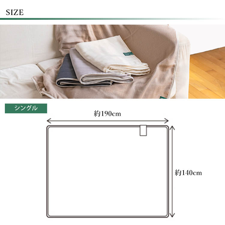 | サイズ | シングルサイズ:横幅140cm×縦幅190cm |