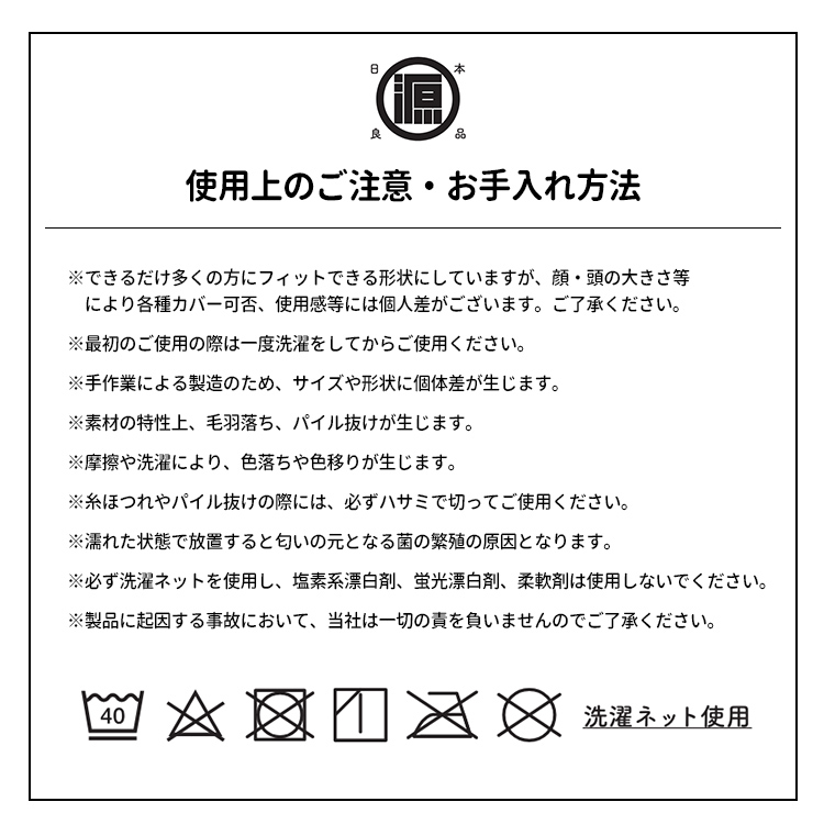 | 注意事項 | ※ネットを使用せずに洗濯した場合、洗濯浴槽内で引っかかりが生じ、パイル抜けの原因となる可能性がございます。洗濯する際は必ず【洗濯ネット】をご使用いただくようお願いいたします。またパイル抜けが発生した場合は、糸を引っ張らず伸びた部分をハサミでカットしてご使用ください。 ※複数店舗を運営しておりますため、ご注文の入れ違い等で欠品などになってしまう場合がございます。万が一、発送が遅れる場合は、ご注文受付当日中にご案内差し上げます。誠に恐れ入りますがご了承くださいますよう、お願い申し上げます。 ※ご予約・お取り寄せ商品は、ご注文受付後にお客様ご注文分としてメーカーへ発注を致します為、基本的にキャンセルやご返品はお受けできません。 ※実際の商品の色になるべく近いかたちで掲載しておりますが、モニターの違いなどで実際の商品と色味が異なる場合がございます。予めご了承ください。 ※全面に柄がプリント、刺繍、織り等で施されている商品は、生地をランダムに裁断するため、柄の出方に個体差が生じます。出来上がりはひとつひとつ異なりますので、予めご了承ください。 ※商品に印字されているロゴおよび内側の布の色など、製品の仕様が予告なく変更になる場合がございます。あらかじめご了承ください。 |