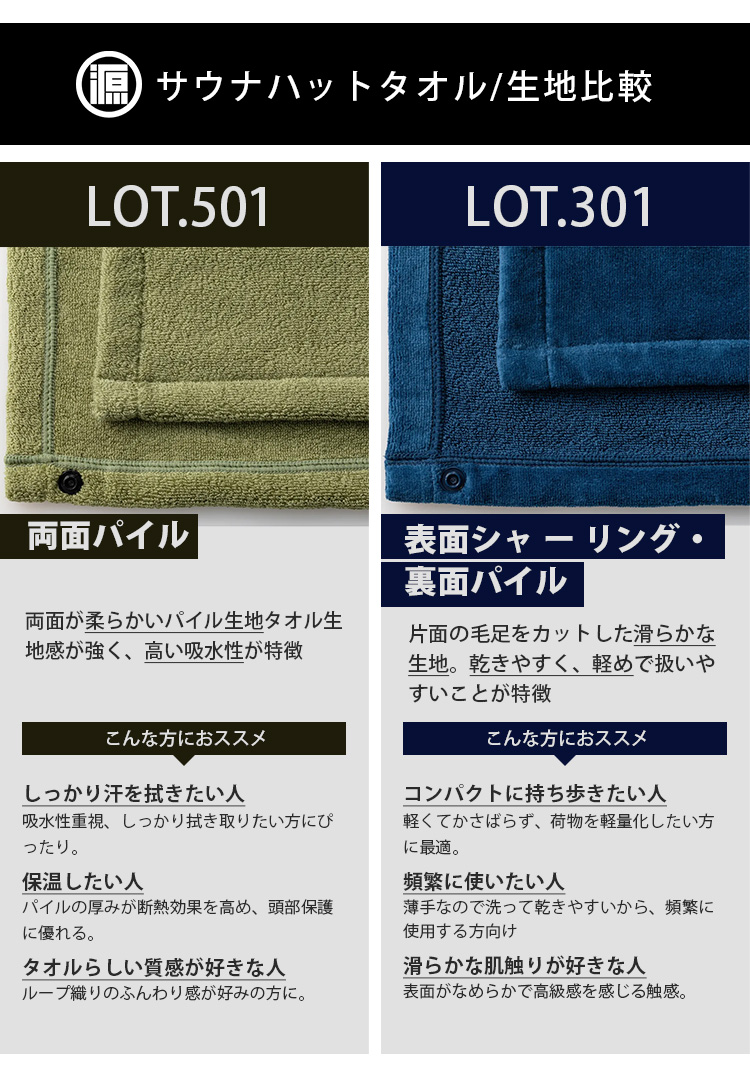 | 商品名 | サウナハットタオル LOT501 |
