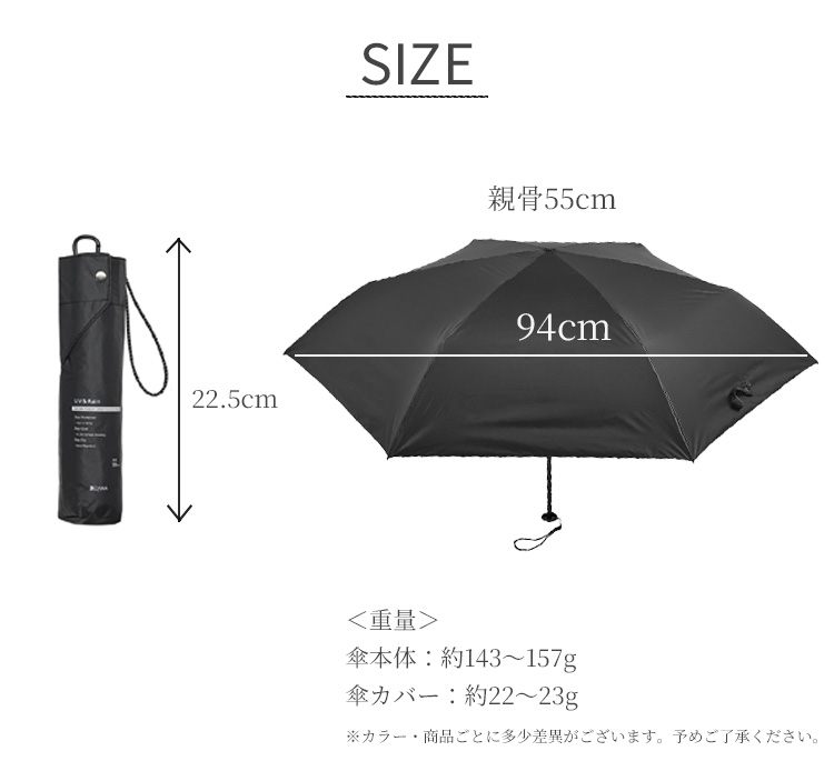 | 重量(約) | 傘本体:約143〜157g 傘カバー:約22〜23g |