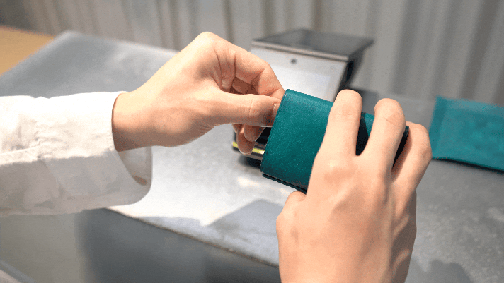 | 開いた瞬間にカード・小銭・お札へ同時アクセス。手を持ち替えずにスムーズ決済。 |