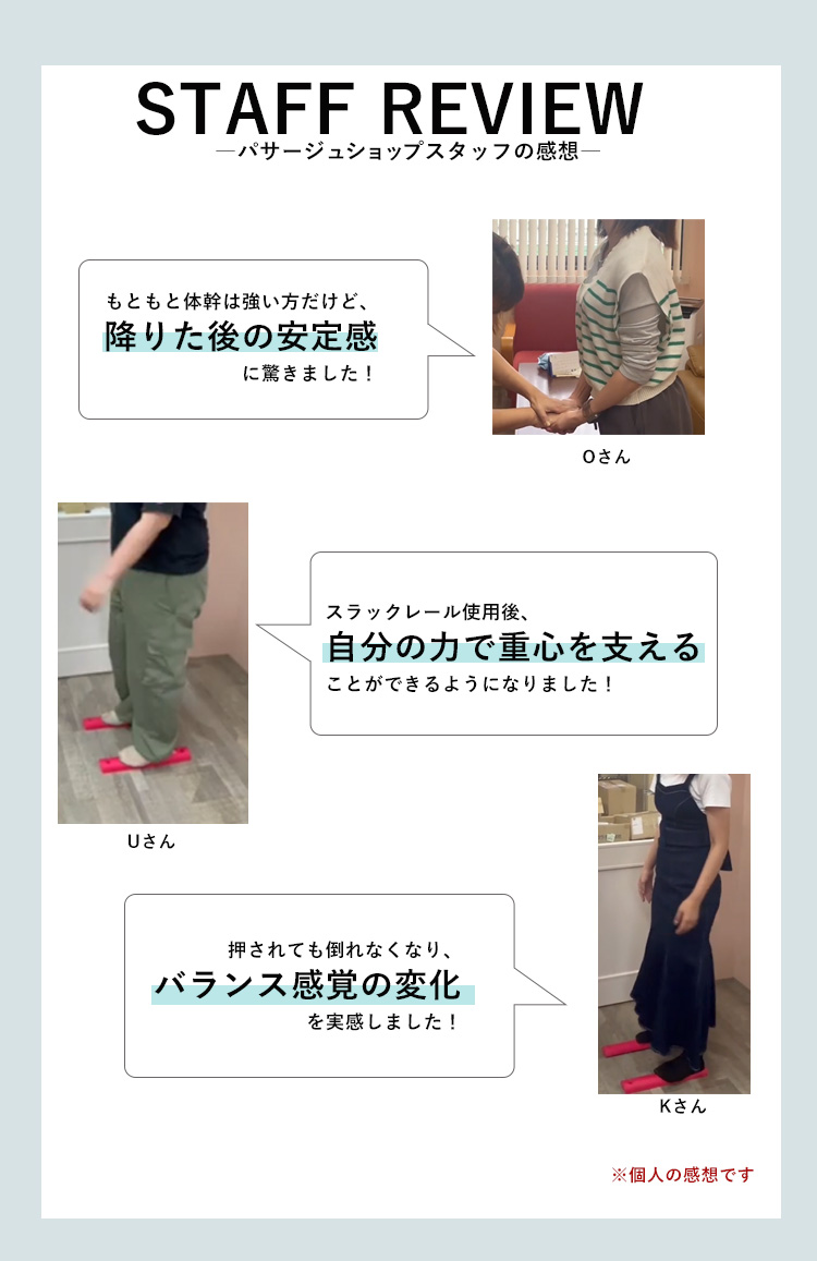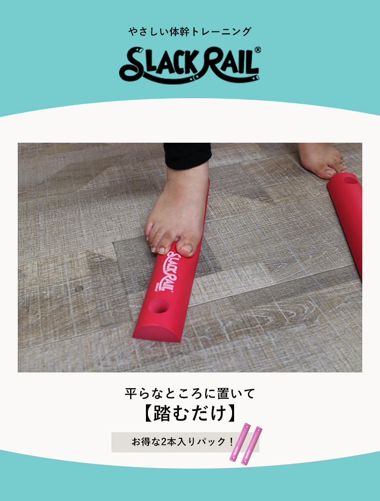 | 「スラックレール コンパクト」は、ふわふわのやわらか素材でできた新感覚の体幹トレーニングアイテム。乗るだけで自然にバランスを取るから、無理なく体幹を鍛えられます。運動が苦手な方やシニアの方にもぴったり。 リビングでも寝室でもOK。柔らかな素材が衝撃を吸収し、フローリングを傷つけず静かにトレーニングできます。テレビを見ながら“ながら運動”にも最適! 「スラックレール コンパクト 2Pパック」は、両足でのバランス練習や並べて歩行練習など、用途が広がるセットタイプ。親子で一緒にトレーニングしたり、リハビリの場面で使ったりと、幅広いシーンで活躍します。 |