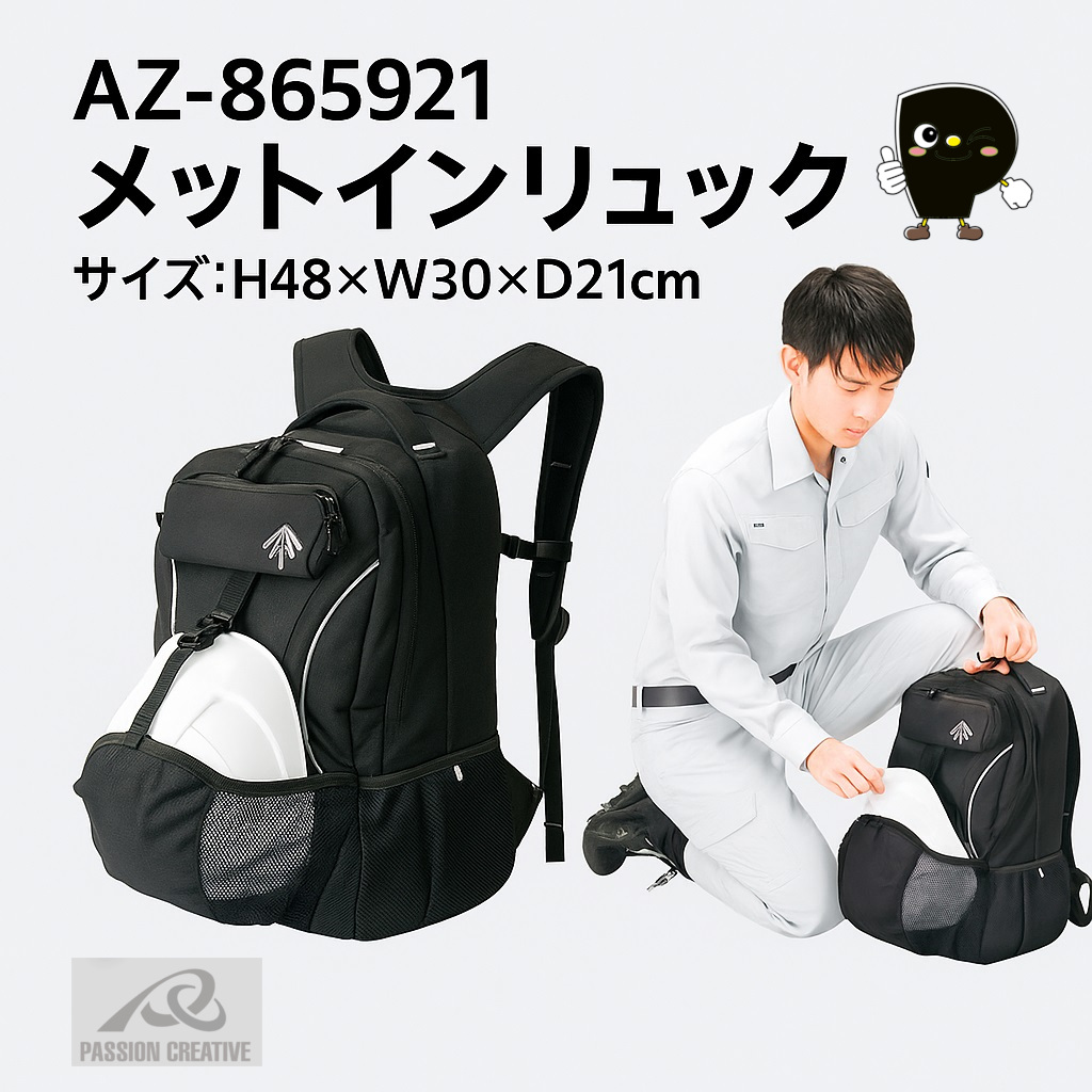 (メットインリュック, バックパック, リュック 30L, ヘルメット収納, ヘルメットリュック, 大容量リュック, 通勤リュック, 通学リュック, 防災リュック, 反射ライン リュック, ナイロンリップストップ, AITOZ, アイトス, AZ-865921, ブラック リュック, 自転車リュック, バイクリュック, 夜間対応リュック, アウトドアリュック)
