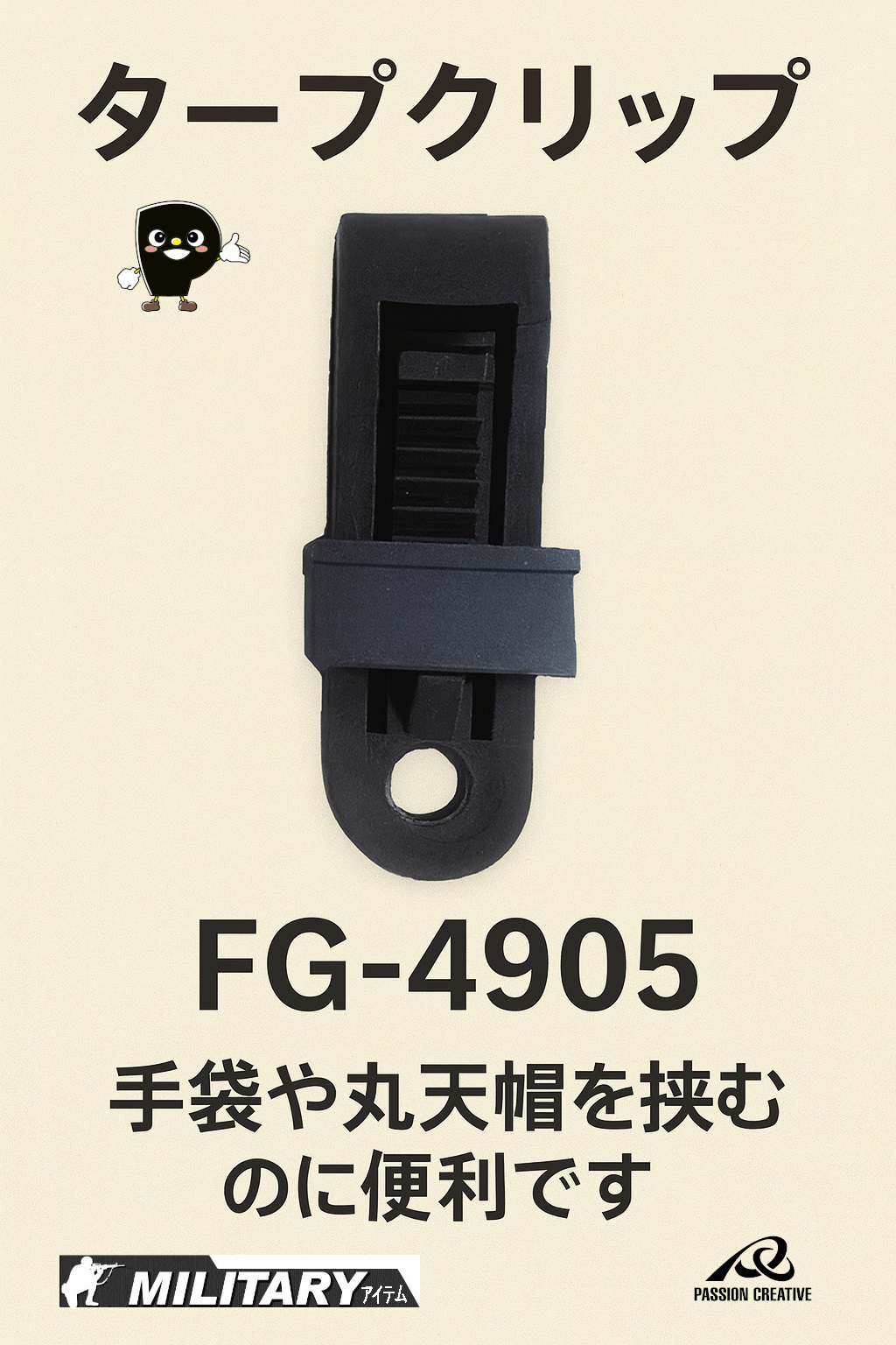 FG-4905,タープクリップ,強力クリップ,プラスチッククリップ,ブラック,アウトドア,キャンプ,弾帯,ベルト,カラビナ,ミリタリー,自衛隊,手袋ホルダー,帽子クリップ,便利グッズ