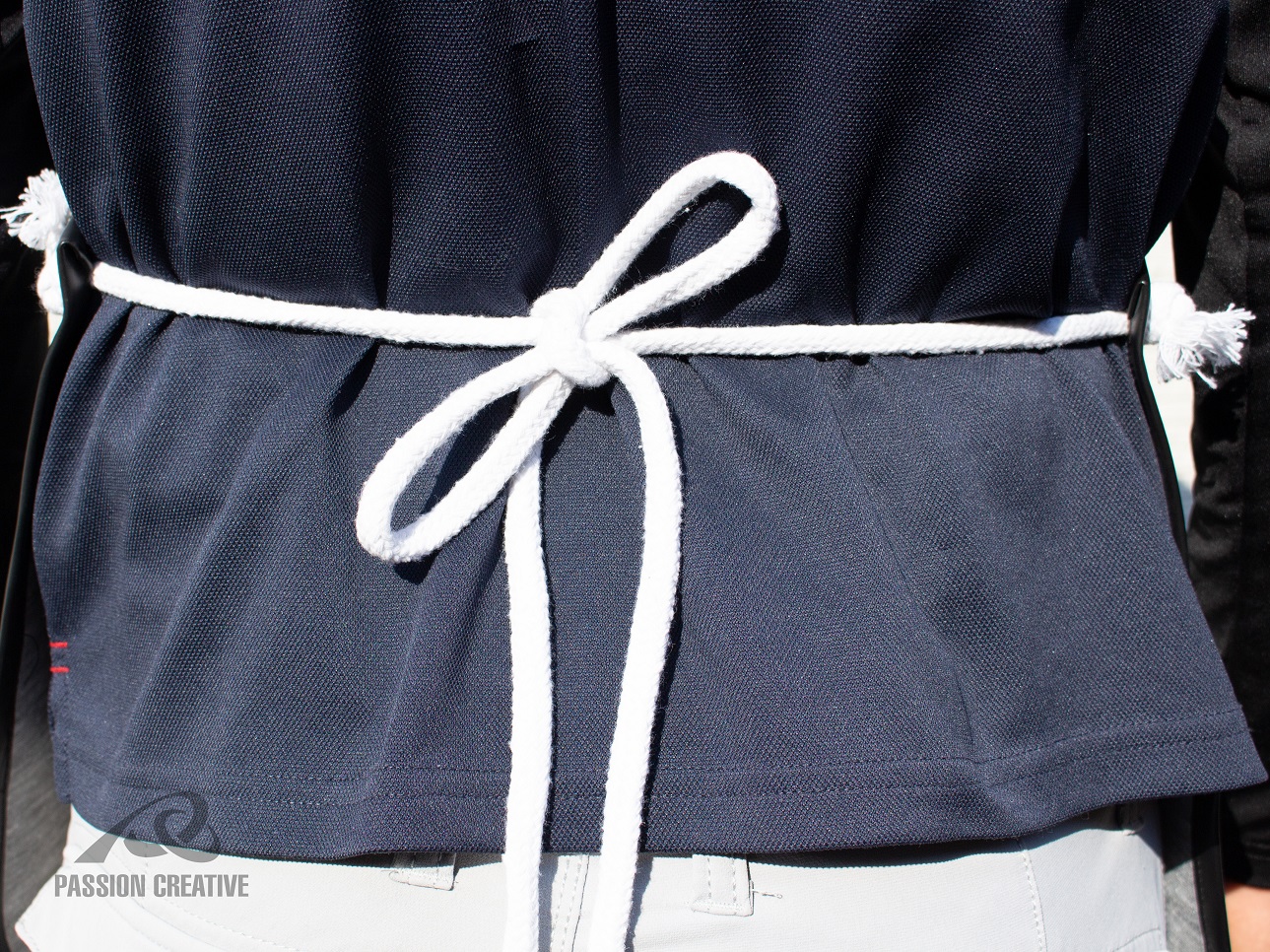 ロープ式(紐長さ 約70cm×3本)、ハトメ仕様、ポケット付き