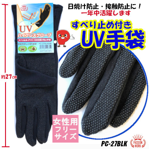 (PC-27BLK, 黒綿手袋, 綿手袋, UV手袋, ハイブレスグローブ, コーマ糸, 滑り止め手袋, ドット加工, 夏用手袋, UV対策, 紫外線防止, 日焼け防止, 綿100% 手袋, 男女兼用, 黒手袋, 通勤手袋, 運転用手袋, 作業用手袋, 高級手袋, おしゃれ 手袋, スタイリッシュ 手袋)