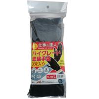 日本製品質 PC-30 黒綿手袋 3双組|綿100% コーマ糸 滑り止めPVCドット付き マチ付き 作業用 DIY 接客用 ドライブ用 手袋