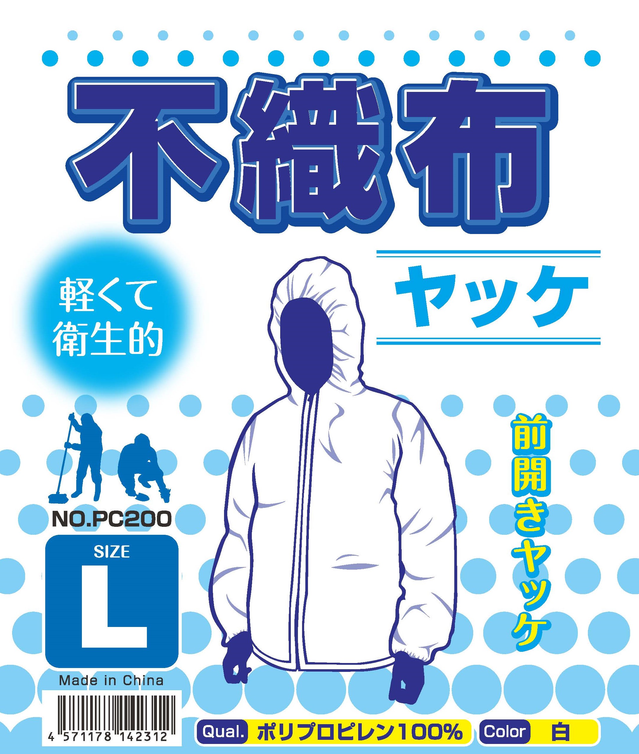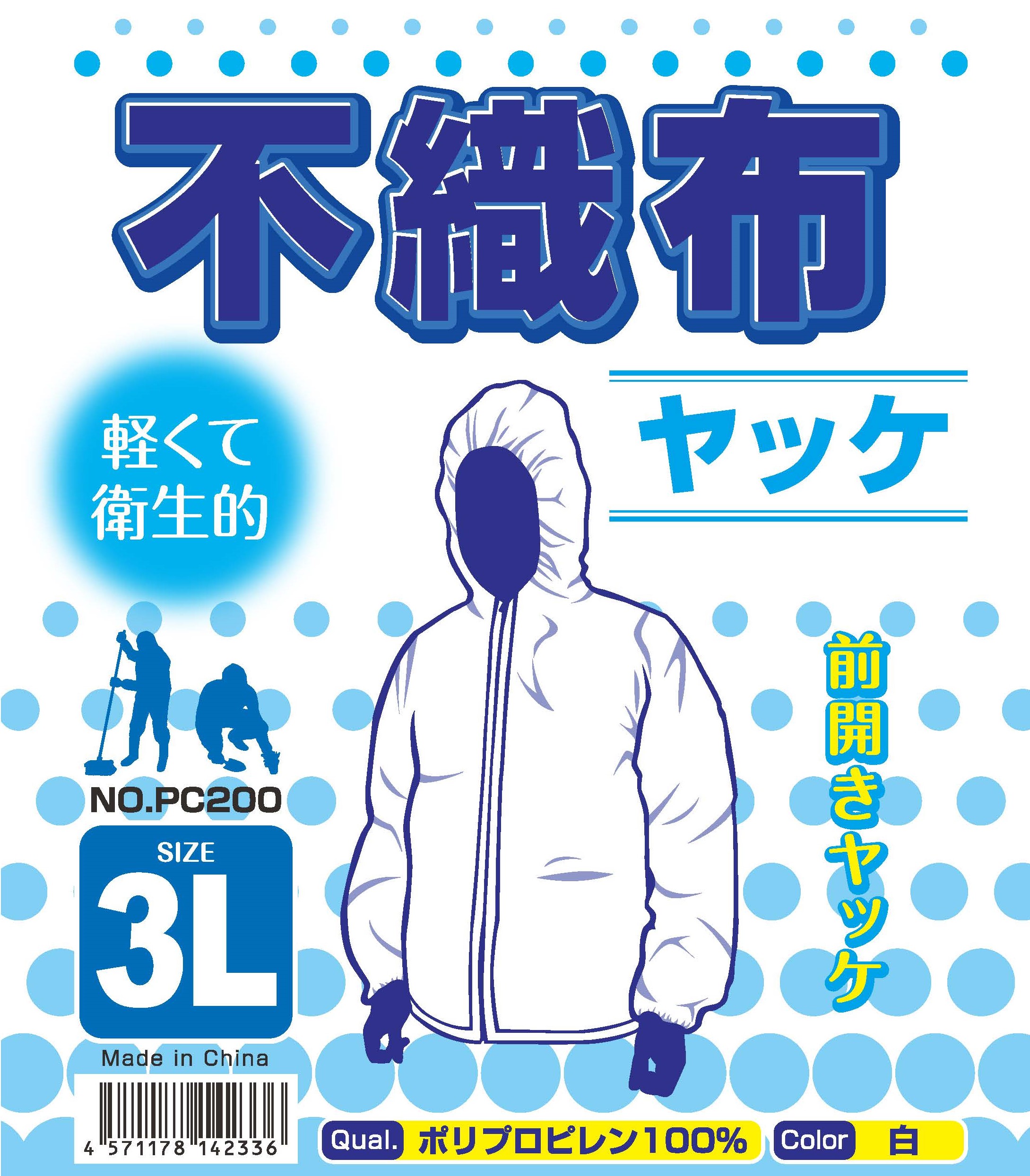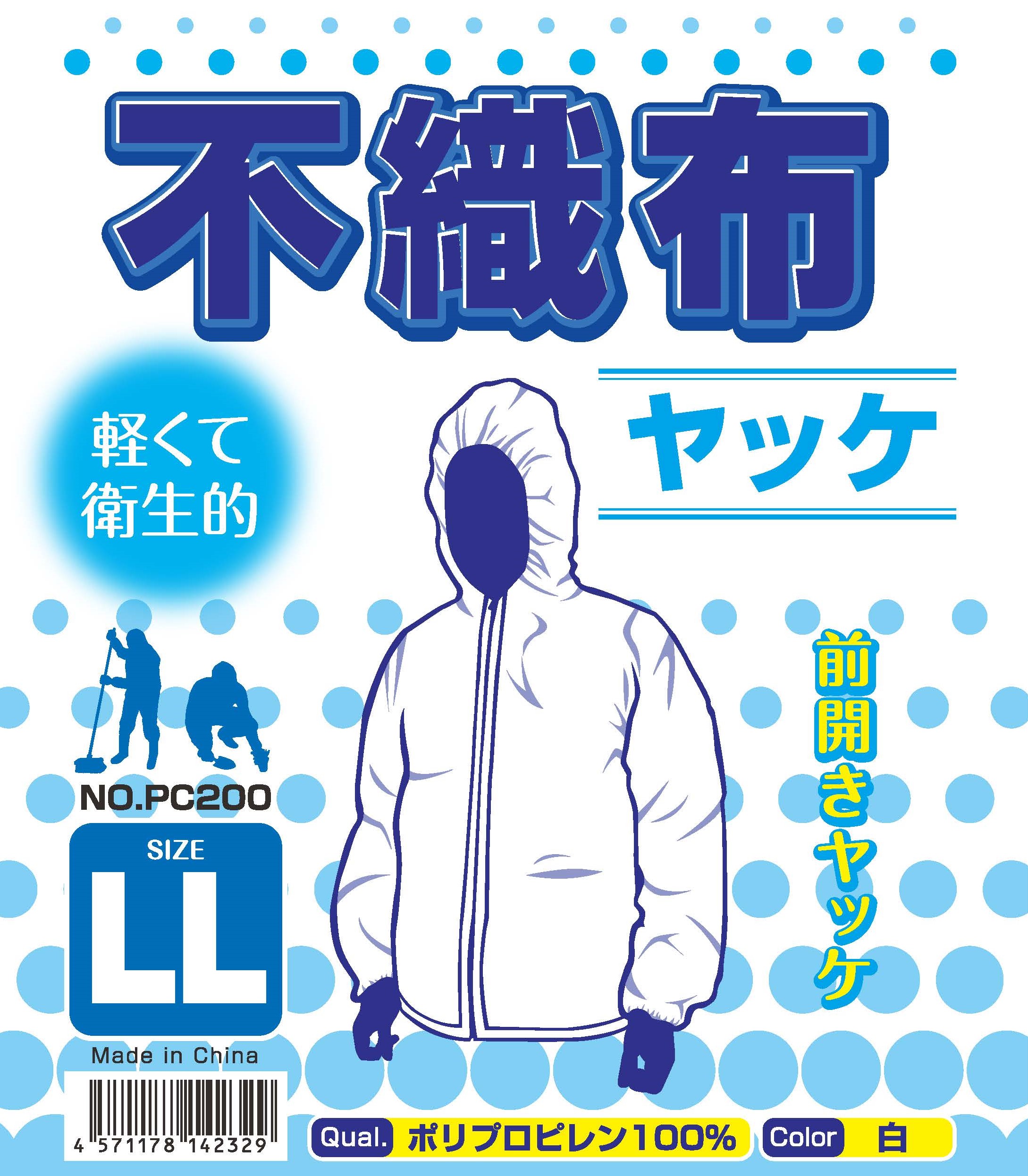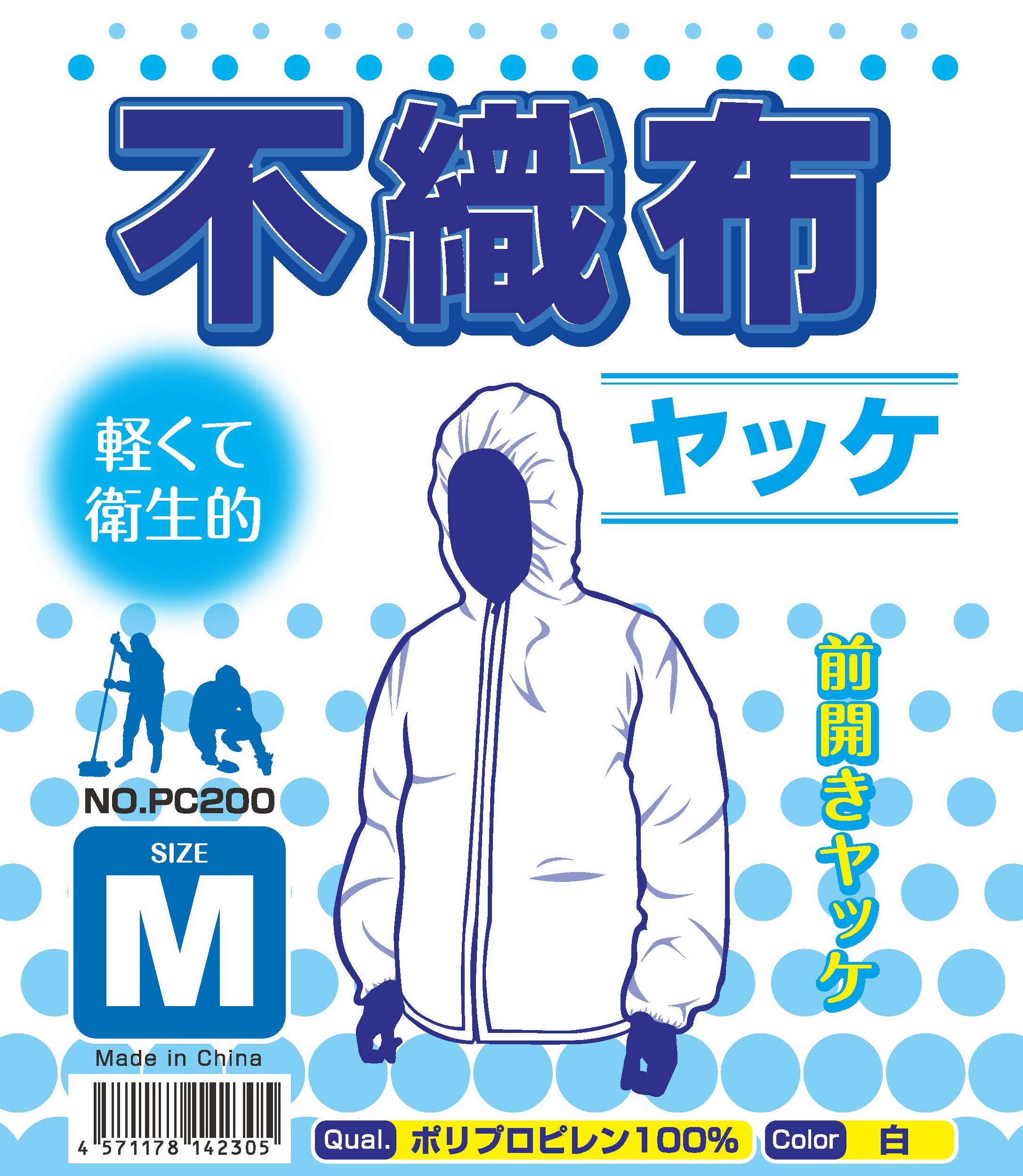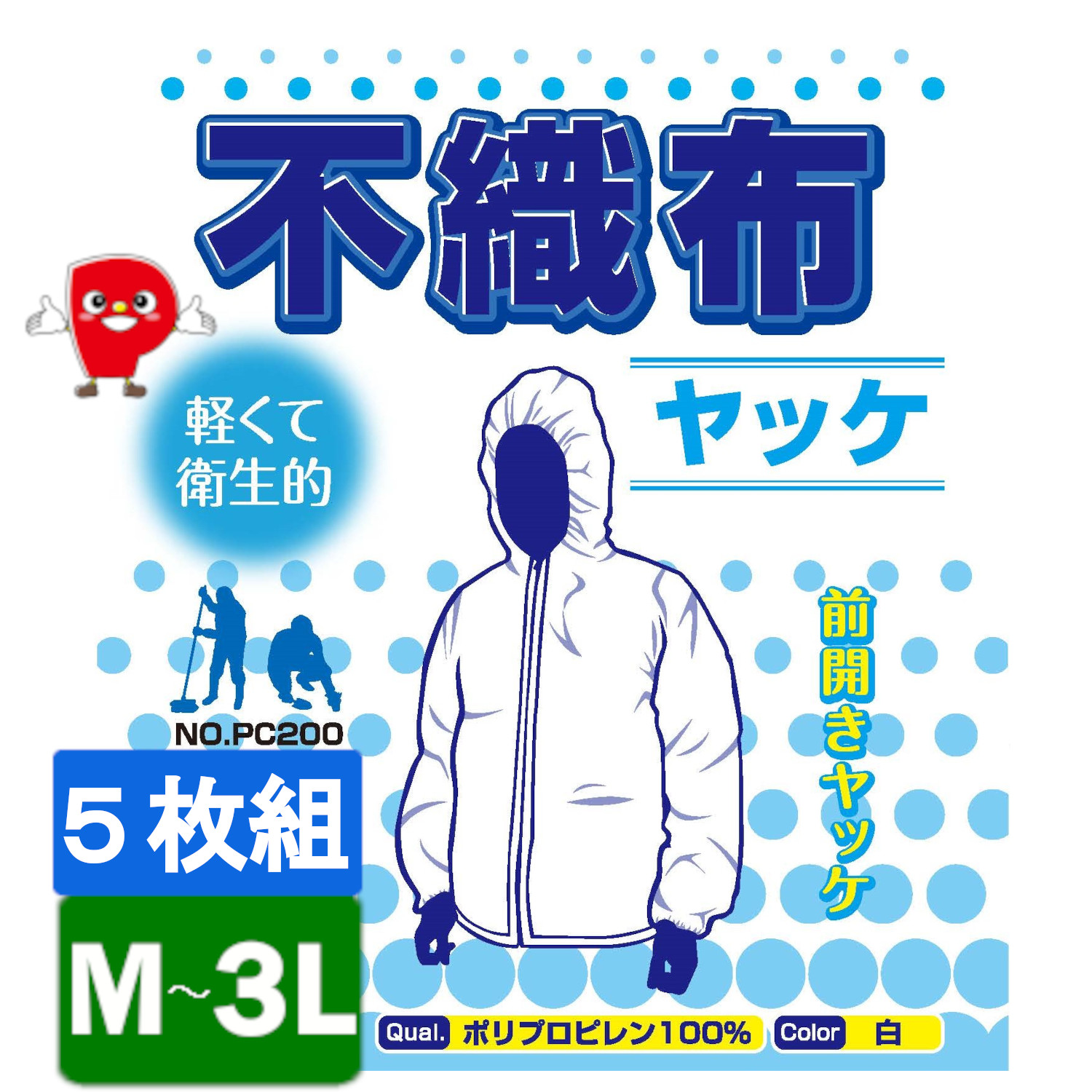 不織布ヤッケ 前開き ファスナー付き フード付き 5枚セット 防護服 作業服 粉じん防護 ミスト対策 軽量 通気性 M/L/LL/3L 建設 工場 農業 PC200 爆買