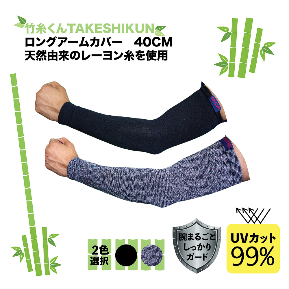 40cmのロングサイズで腕全体をしっかりガードし、UVカット率98〜99%で紫外線から守ります。
