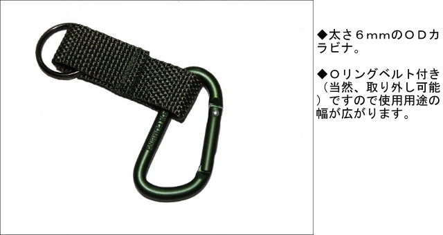 OD ナス型カラビナ TY-9-2 アルミ製 6mm/Oリングベルト付き|アウトドア・キャンプ・鍵・ギア固定に最適