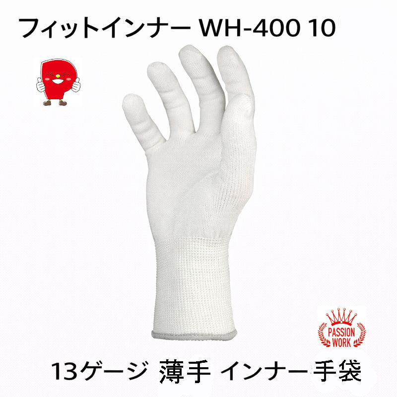 勝星産業「フィットインナー WH-400」は、13ゲージ薄手のポリエステル手袋。