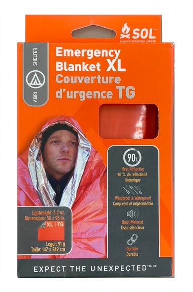 | ◆メーカー:SOL(ソル) ◆品名:サバイバルブランケット ◆品番:12134 2人で使うことのできるサイズの非常用ブランケット。体熱の90%を反射させて体温を維持する特殊な素材「ヒートシートR」を採用しています。使用時のガサガサ感がなく、しなやかな素材が特徴です。引き裂き強度も強く、繰り返し使えます。外側のオレンジ色の面には、緊急時のサバイバルテクニックがプリントされています。アウトドアにお出かけの時だけでなく、ご家庭や職場でもご用意ください。 ●サイズ/152×244cm ●重量/91g 【ヒートシート】 ヒートシートはアメリカのA.F.M(Advanced Flexible Material 社)が開発したポリエチレンの生地に特殊技術で純度99.999%の高純度なアルミを蒸着加工したシートです。A.F.M 社はアメリカ宇宙財団のメンバーとしてNASA の開発した技術の民間利用を促進しており、宇宙財団から反射断熱材技術のカテゴリーにおいて独占件を認められています。ヒートシートR を使用した製品はスペーステクノロジーをフィードバックした製品として宇宙財団の認証マークの使用が許可され信頼の証となっています。アドベンチャーメディカルキット社ではA.F.M 社の技術力にの高さに着目しヒートシートR を使用したブランケットをはじめとしたサバイバルグッズ専門のS.O.Lブランドを新たに展開しアメリカ、カナダをはじめ多くの国々で好評を得ています。 S.O.L のヒートシートを使用した製品は 類似の一般的にエマージェンシーシートと呼ばれている ポリエステルを生地に使用した他社製品と比べ多くの面で優れています。 ●体が放射する熱の90%を保持 ●素材がポリエチレンのため非常にしなやかで繰り返しの使用が可能 ●ガサガサ感が無く簡単に折りたたむことが可能 ●人体に有害な成分を含まず安心して使用することが出来る ●キズが付いた場合もポリエステル生地のブランケットのように裂けてしまうことが無く補修可能 ●ポリエステル生地の他社製品に比べ30 〜 50%薄いにも関わらず強度は他社製品を上まわる |