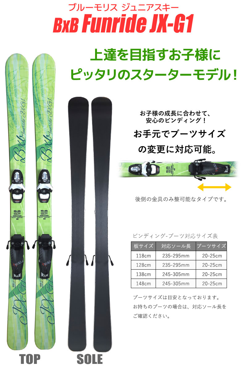 【アウトレット】Jrスキー 4点セット キッズ ジュニア BxB Funride JX-G1 グリーン 118/128/138/148cm 金具付き ストック付き ブーツ付き 3点セット 子供用