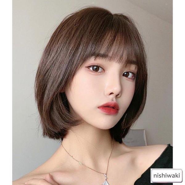 ウィッグ 自然な人毛100%フルウィッグ かつら 人毛 自然 ボブ ミディアム ショート レディース