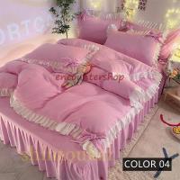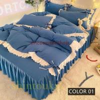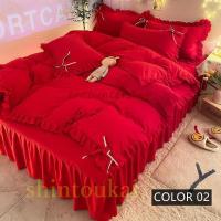 布団カバー4点セット 無地 オシャレ 姫系 リボン ベッドカバー ベッドスカート フリル 可愛い フラットシーツ 掛け布団カバー 通気 春夏 セミダブル