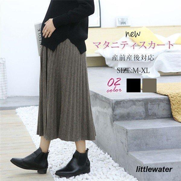 マタニティ スカートプリーツスカート ロング丈 ミモレ丈 スリット ハイウエスト 産前産後兼用 着痩せ 無地 秋冬 おしゃれ 可愛い マタニティウェア