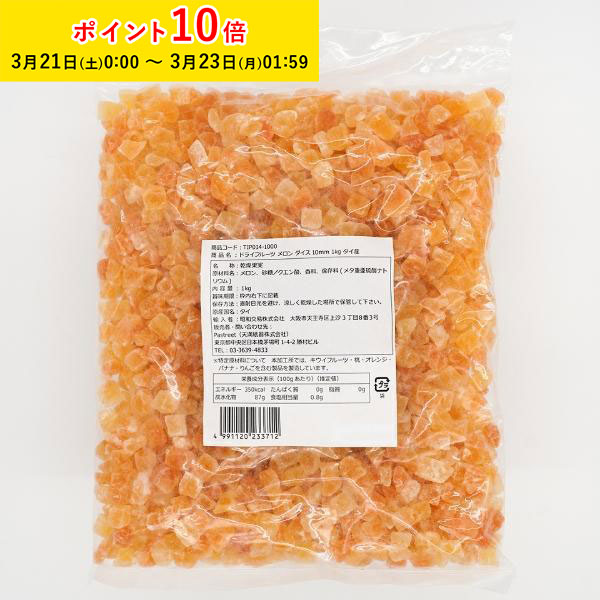 | 製菓製パン・グラノーラ製品に使用しやすいようダイスカットにしたドライフルーツです。赤肉メロンをダイスカットし、ドライフルーツに仕上げました。 | |