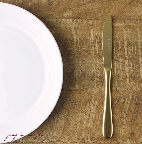 食卓のアクセントに使いやすい、マットゴールドのカトラリーです。