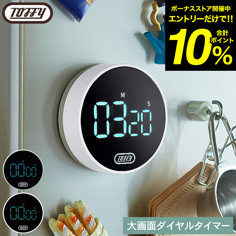 Toffy トフィー 大画面ダイヤルタイマー K-KU22 送料無料 / キッチンタイマー ストップウォッチ 見やすい 音量調節 便利 勉強 調理 料理
