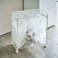 レジ袋を隠して分別できるスタイリッシュな分別ダストワゴン。瓶・缶・ペットボトルなどを分別できます。お手持ちのコンビニやスーパーのレジ袋を引っ掛けてお使いいただけます。キャスターが付いているので、袋の取り外しやお掃除の際の移動もスムーズです。