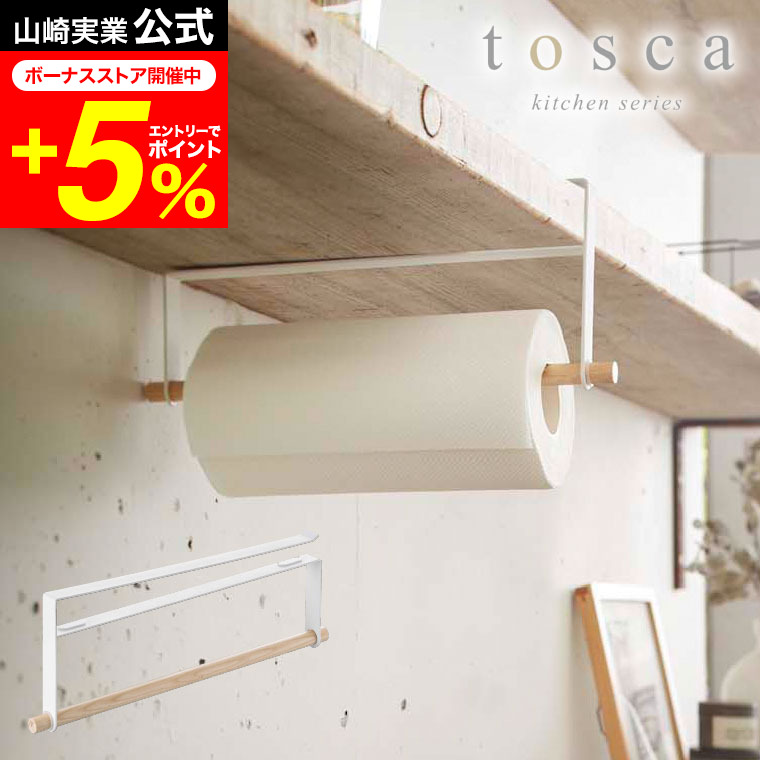 tosca 山崎実業 戸棚下キッチンペーパーホルダー トスカ キッチン 公式 ホワイト 送料無料 吊り下げ ナチュラル おしゃれ 直径16cmまで対応