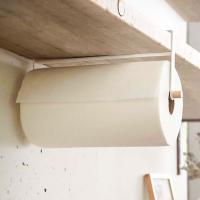 戸棚下の空間をキッチンペーパーホルダーとして有効利用できます。海外製の大きなサイズのキッチンロールペーパーも収納できます。