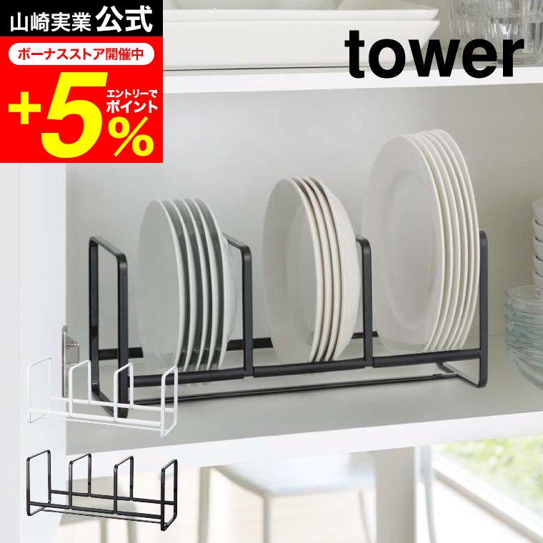 tower 山崎実業 ディッシュラック ワイド S タワー 公式 ホワイト/ブラック 3147 3148 送料無料 皿 縦置き ディッシュスタンド 食器棚