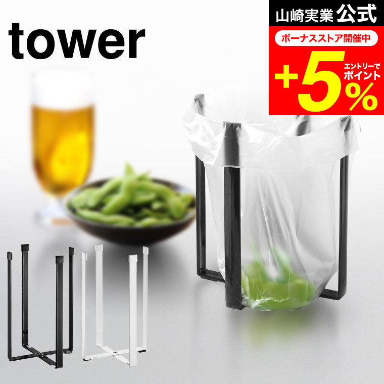 tower 山崎実業 ポリ袋エコホルダー L タワー ゴミ箱 公式 ホワイト/ブラックごみ箱ホルダー コップ 水筒 水切りスタンド