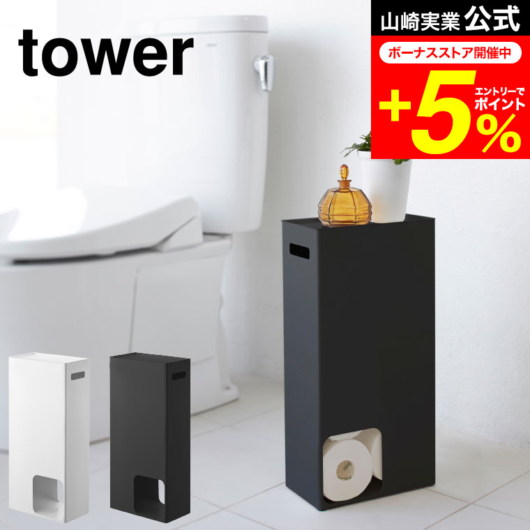 tower 山崎実業 トイレットペーパーストッカー タワー トイレ 公式 ホワイト/ブラック トイレ収納 隙間収納 スリム 天板付き 衛生的 8個 送料無料