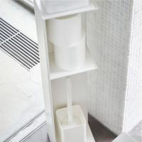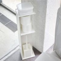 インテリア性のあるスタイリッシュなデザインのスリムトイレラック。トイレブラシやトイレ用洗剤など掃除用具からトイレットロールペーパーなどを隠して一括収納