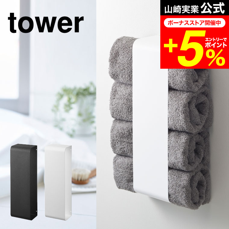 tower 山崎実業 マグネットバスタオルホルダー タワー 洗濯 公式 ホワイト/ブラック 洗濯機横 洗面所 脱衣所 ランドリー 収納 タオル 送料無料
